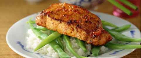 4. Neem de Chinese varkensfiletlapjes uit de pan en verdeel deze over 4 borden.