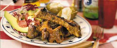 1. Breng het water met de azijn, de suiker, 3 eetl. TexMexkruiden en de spareribs aan de kook. Zet het vuur laag en kook de spareribs zachtjes gaar (ca. 25 minuten). Zo nu en dan omscheppen.