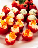 Snijd van de bolle kant van de tomaatjes het kapje af.