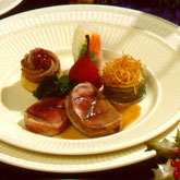 Lekker met een garnituur van bijvoorbeeld kastanjepuree op artisjokbodem, gefrituurde knolselderij-julienne en gestoofde peertjes.
