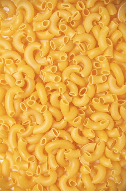 Schep wat saus over het vlees en de macaroni en serveer de rest er apart bij.